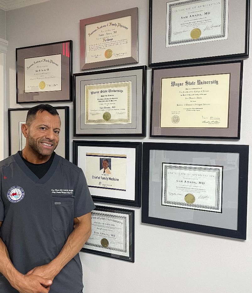 Dr. Awada with Warren Lincoln varsity wrestling head coach Ken Kaercher. A lot of love in the sport, but no one more loving than the coach himself!